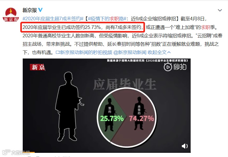 其中,影响最大的还是那874W(比去年同期相比高了40万)的高校毕业生们,从高校延缓开学(有的甚至不开学)、返校取毕业证等种种举措来看,今年的毕业生称得上“史上最难”。
