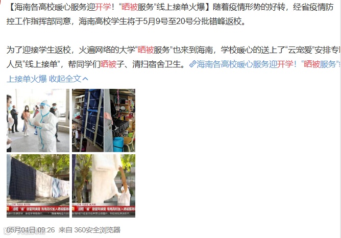 倒不如提前做好准备,各大高校也开始为迎接同学,做好准备,其中海南“云晒被”,获得一大票同学的实名羡慕。