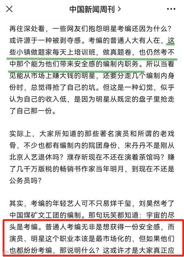言外之意,因为考不中,所以才“酸”,所以才嫉妒,所以才抨击进入编制的明星,这是一种“阴暗心理”。