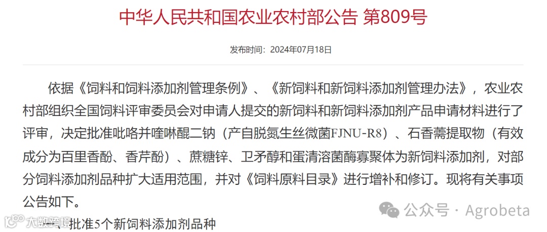 来源:中华人民共和国农业农村部公告 第809号