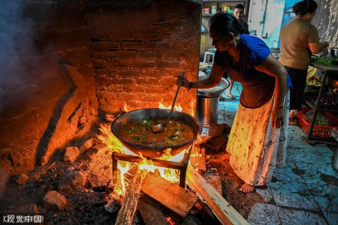 图|斯里兰卡燃油紧缺,民众烧柴做饭
