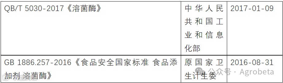 GB 1886.257-2016 《食品安全国家标准 食品添加剂 溶菌酶》适用于以鸡蛋清为原料,经提取、精制等工艺制得的食品添加剂溶菌酶。