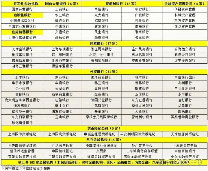 主要给大家列一下银行、证券行业的情况,大家相对熟悉一些。目前外资行跟合资券商都已经有了不少,具体的情况请看下表: