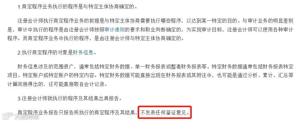 说人话就是,商定程序业务报告只报告所执行的商定程序及其结果,不发表任何鉴证意见,只要公布客观真实的报告。