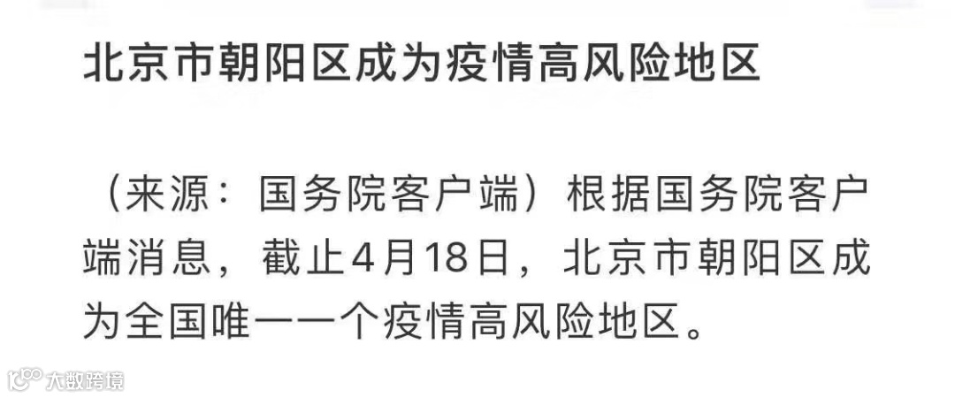 但目前北京市朝阳区成为全国唯一一个疫情高风险地区的相关通知,足以让我们再次恢复之间的警惕。