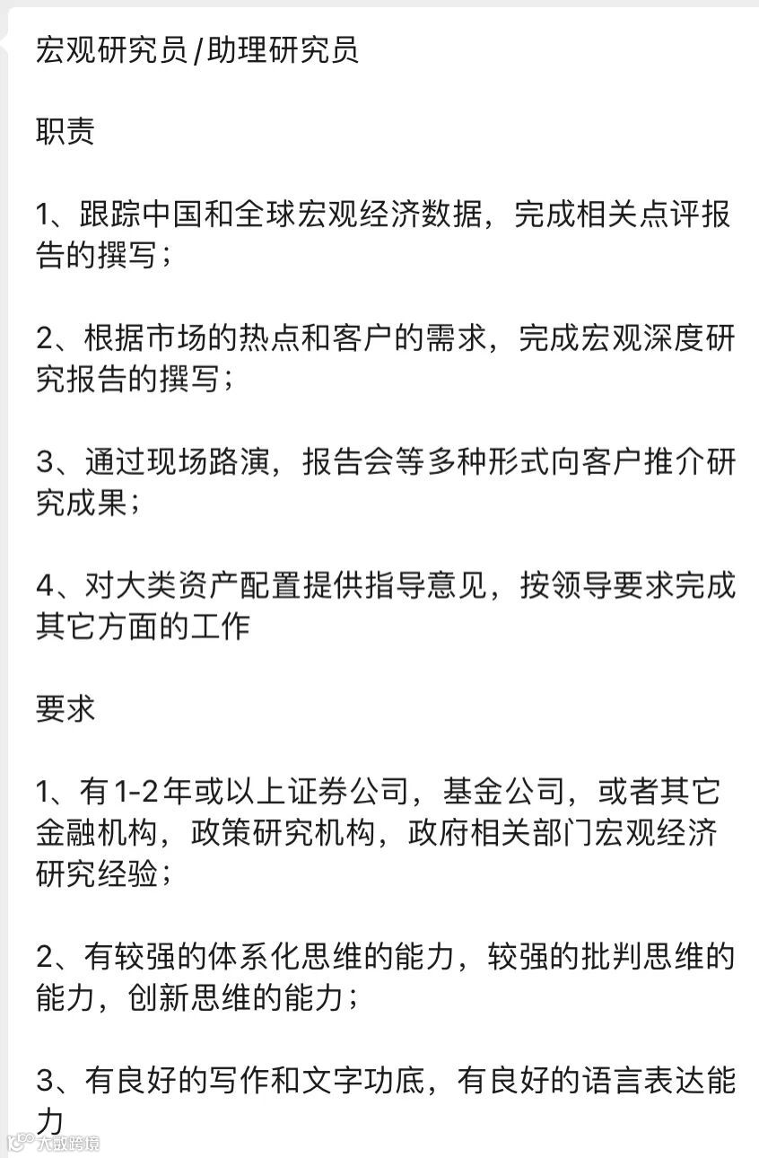 想要成为首席经济学家,从券商宏观研究员是最好的起点,具体可以从招聘JD上看出。