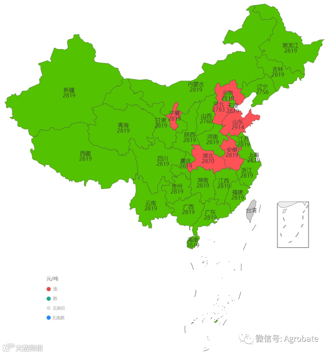 导读:按行政省采集不同样本点价格信息,计算玉米、豆粕大宗原料当日采购均价。 信息来自中国饲料行业信息网、Mysteel、百度爱采购等。统计时间不同会造成当日价格有小幅差异,供参考。