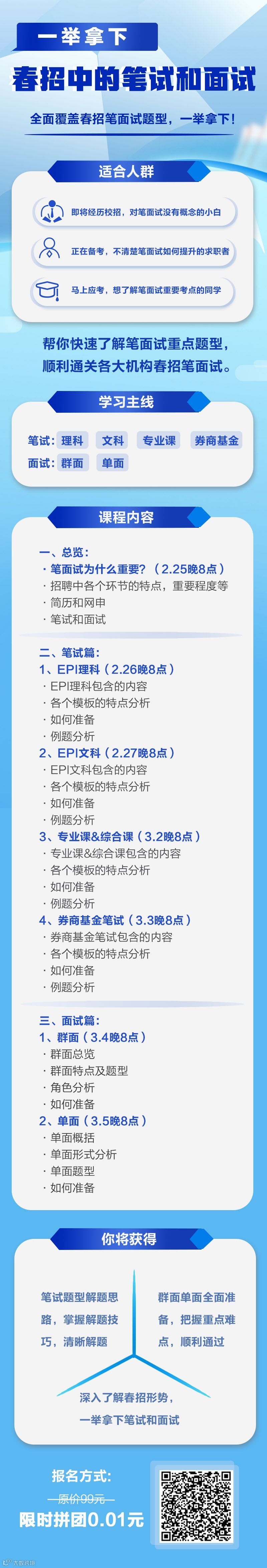 所以,为了让你们重燃学习的热情,同时摆脱备考的焦虑,价值立方团队特别针对春招的笔试和面试系列公开课,全面覆盖考核框架,帮助大家梳理备考意识: