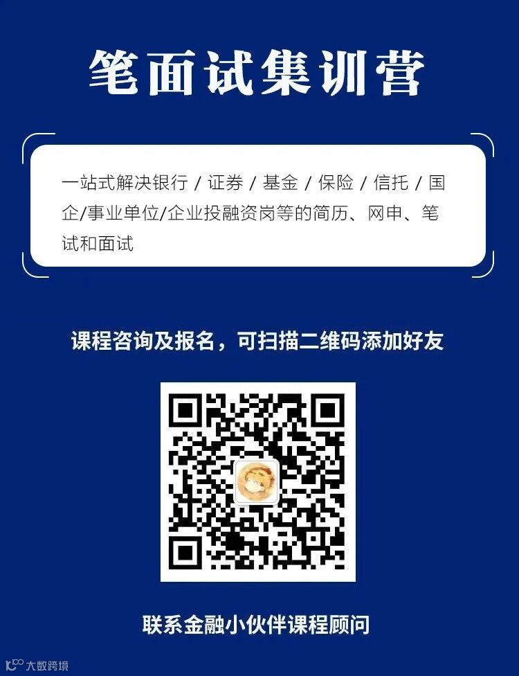 金融小伙伴致力于搭建一个金融垂直领域职业信息分享和交流公益平台,通过持续不断的公众号推文和线上线下活动,提供及时、全面、高效的行业招聘信息和职场提升经验。目前,我们已吸引了超过100万粉丝,在海内外金融学子和在职人士中均享有盛誉。
