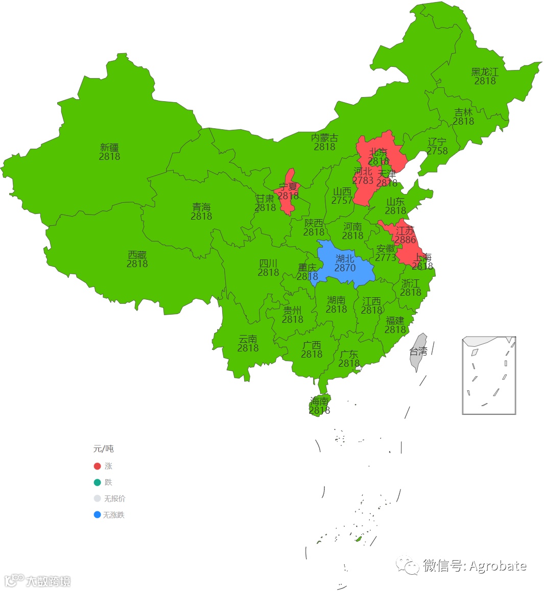 导读:按行政省采集不同样本点价格信息,计算玉米、豆粕大宗原料当日采购均价。 信息来自中国饲料行业信息网、Mysteel、百度爱采购等。供参考。