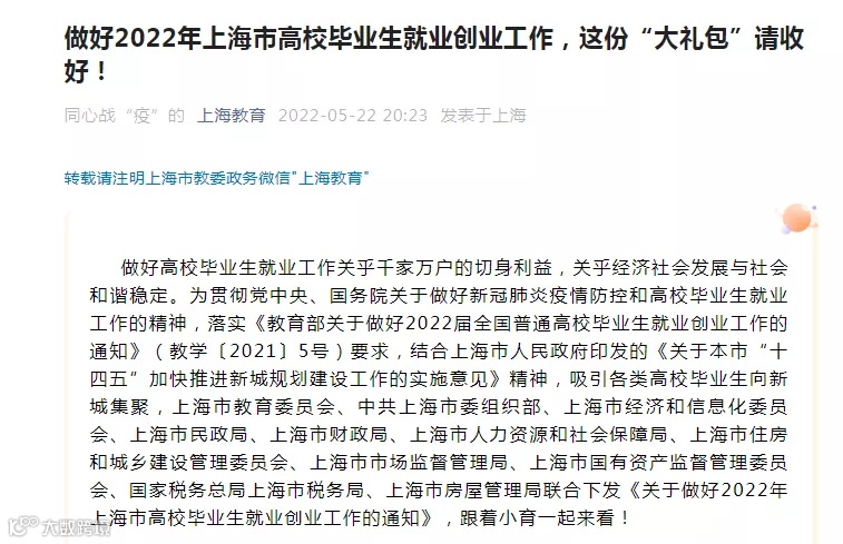 上海11部门近日联合下发《关于做好2022年上海市高校毕业生就业创业工作的通知》(简称通知),其中提到鼓励高校毕业生自主创业。