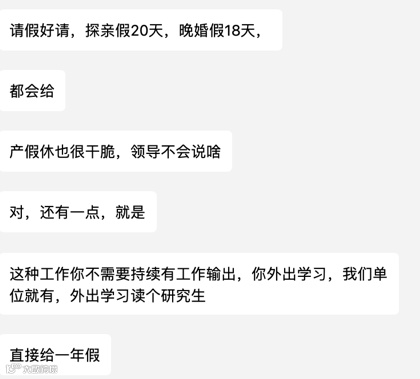 当我们努力爬到了管理层,还是会为了请几天假战战兢兢、怕休完产假就被踢走时,人家单位有一年的假批给你让你学习,回来还是单位的好员工: