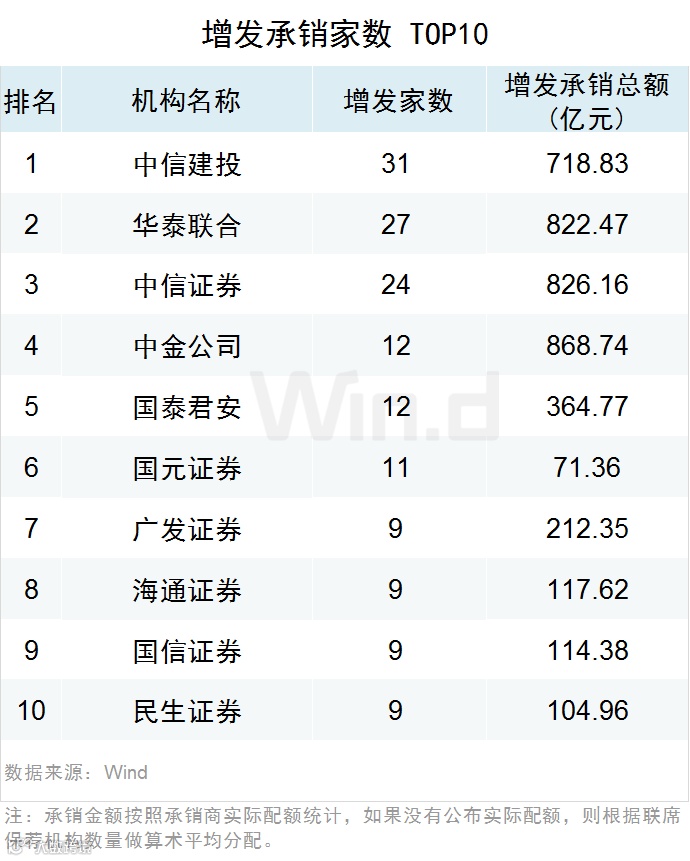 21增发承销金额Top10