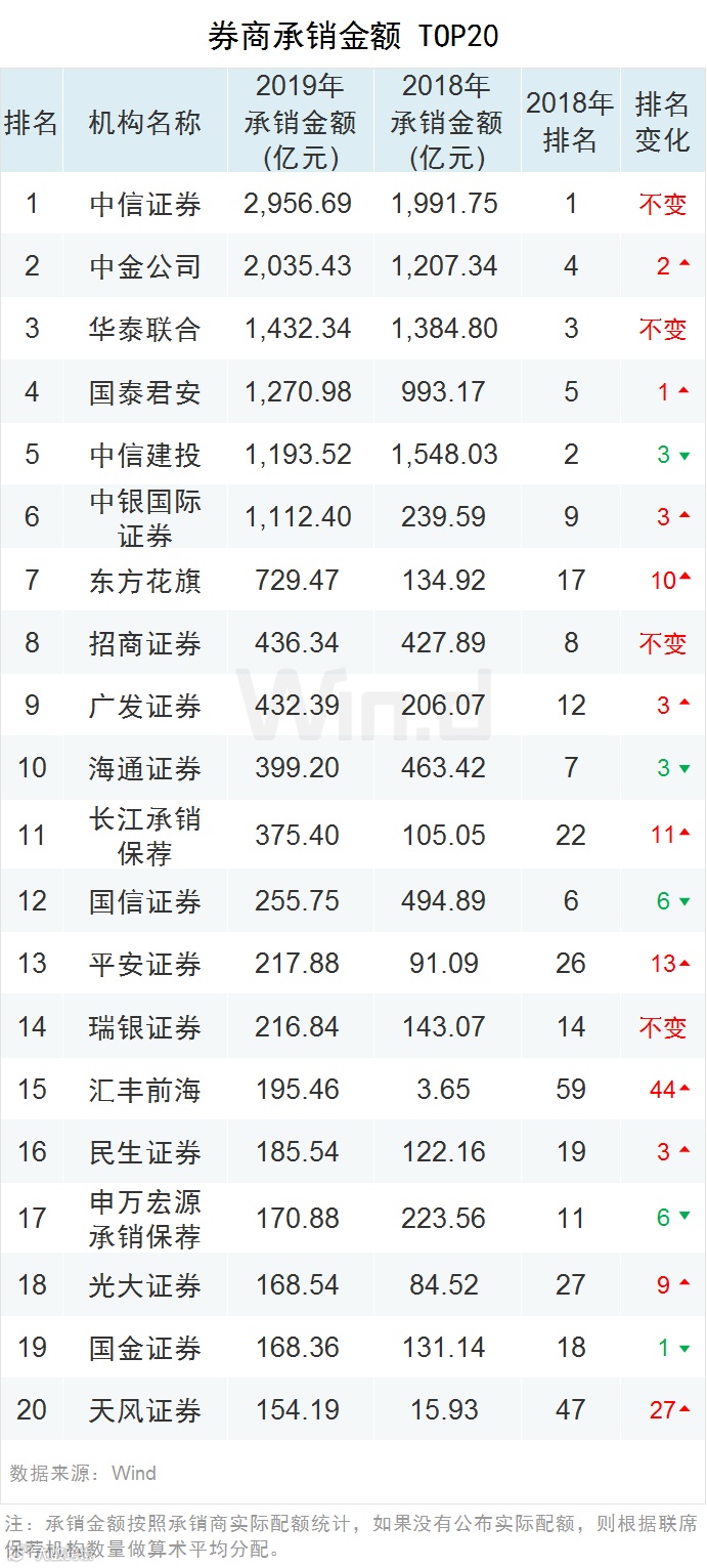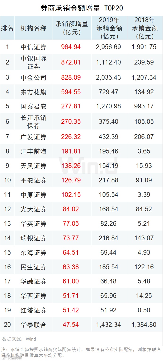 09券商承销金额增量排名Top20