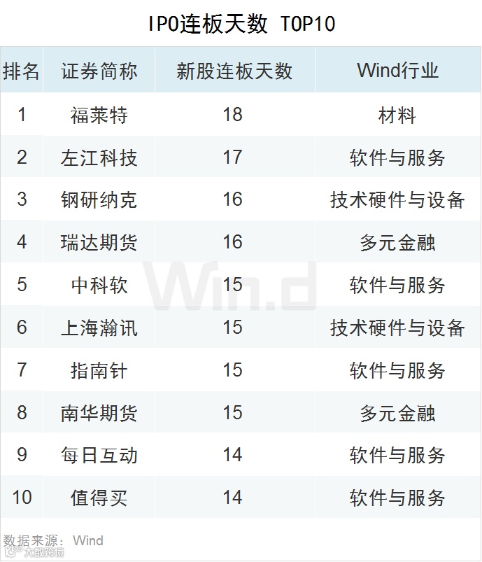 15新股连板天数Top10