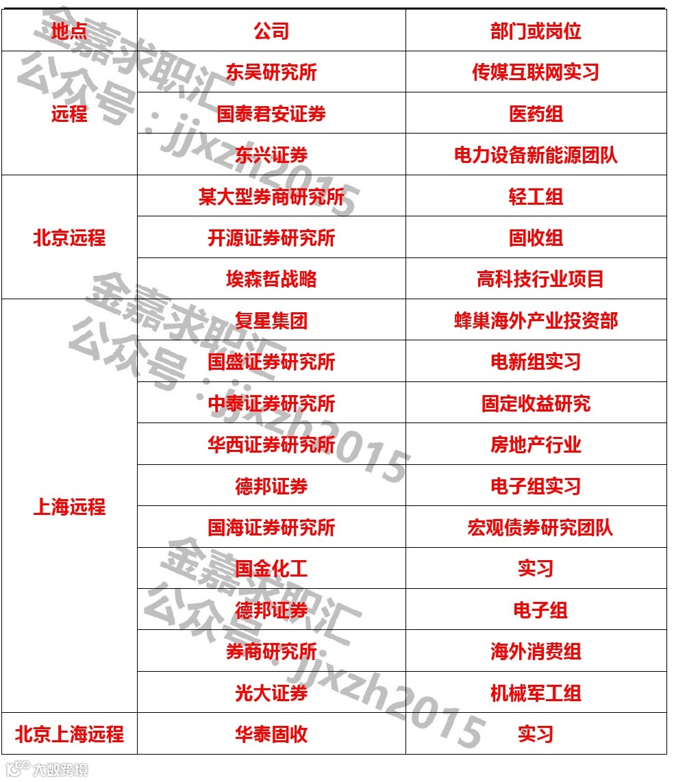 4、实习经验:了解行研基本工作,有券商/基金行研实习经验更佳;