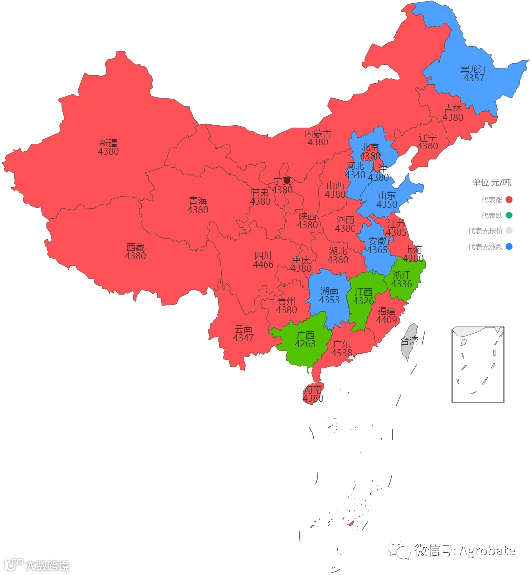 导读:按行政省采集不同样本点价格信息,计算玉米、豆粕大宗原料当日采购均价。 信息来自中国饲料行业信息网、Mysteel、百度爱采购等。供参考。