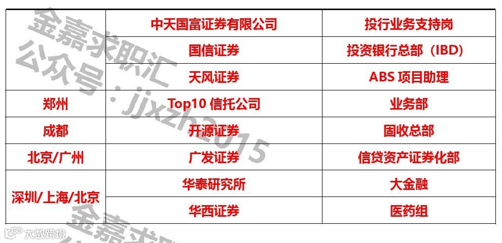 5、有券商投行或资管、律师事务所、信托公司相关实习经历优先考虑;