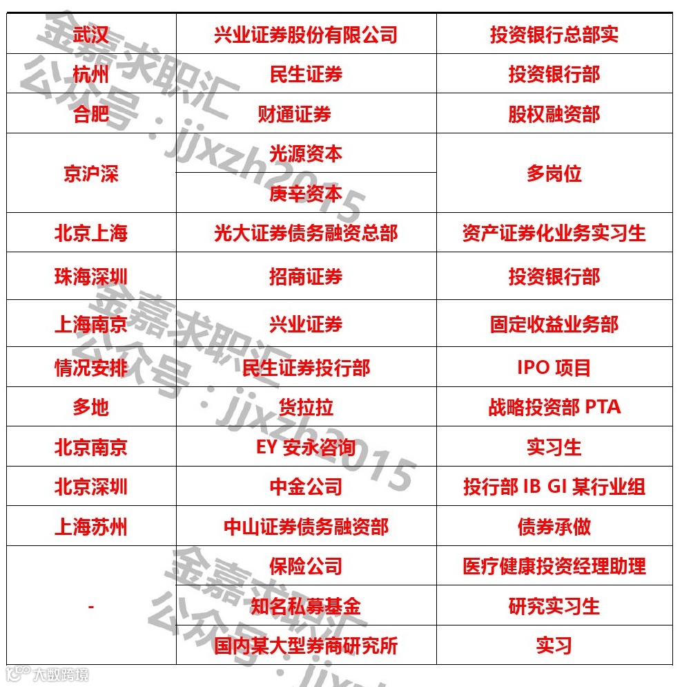 (2)沟通能力强,有券商投行、会计事务所、律师事务所等实习经历者优先;