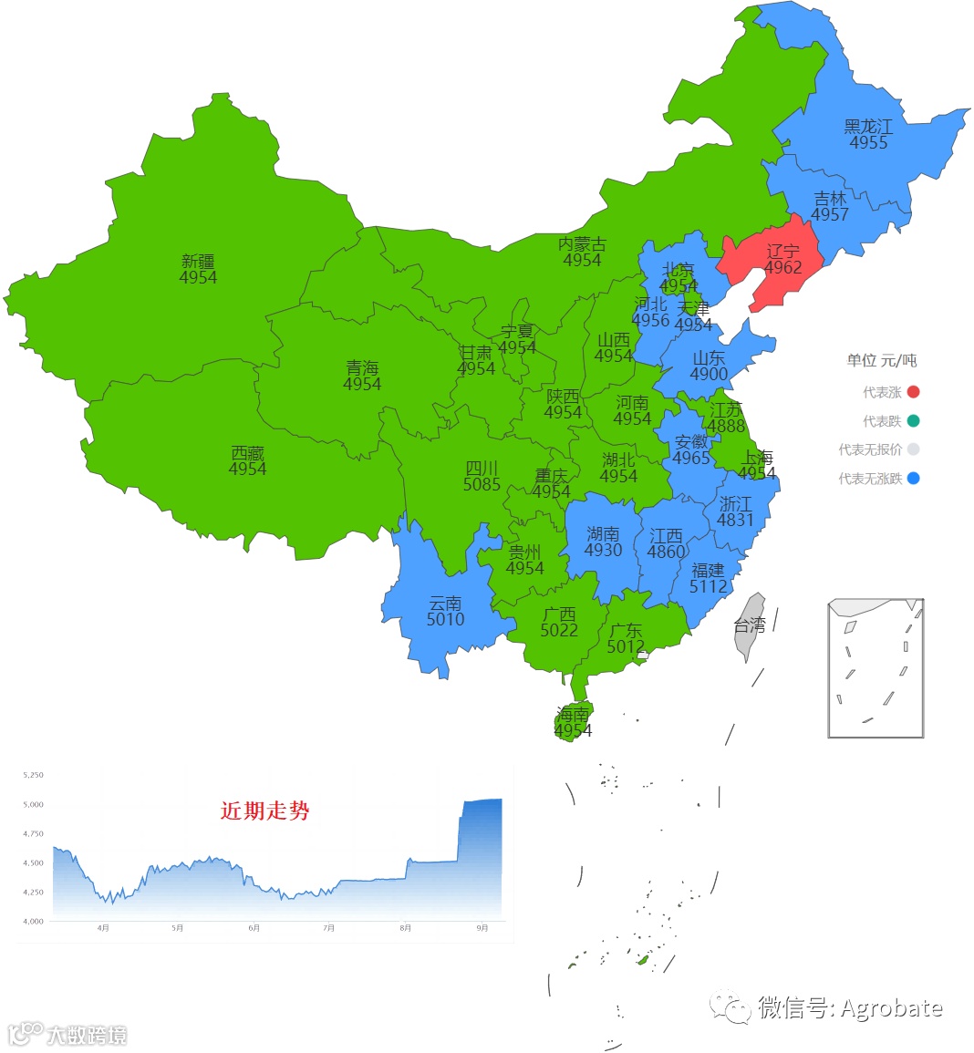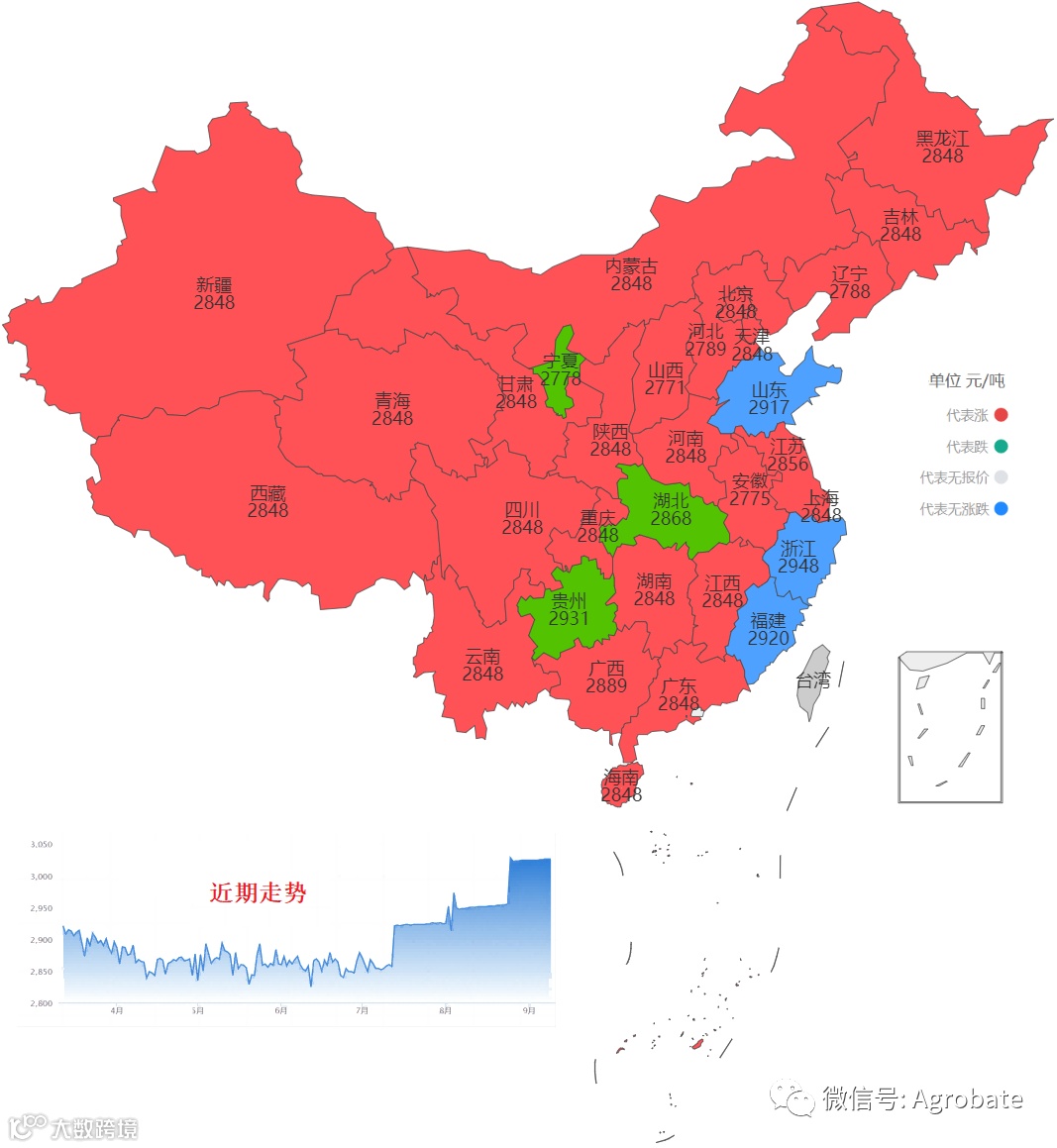 导读:提示以行政省为区划,采集样本点价格信息(来自中国饲料行业信息网、Mysteel、百度爱采购等