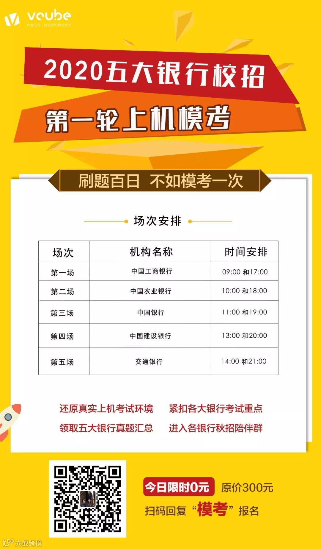 五大行校招统一采取机考形式,区别于一般笔试,因此要先做好机考准备,小伙伴为大家准备了模拟真实考试环境的上机模考!限时0元!