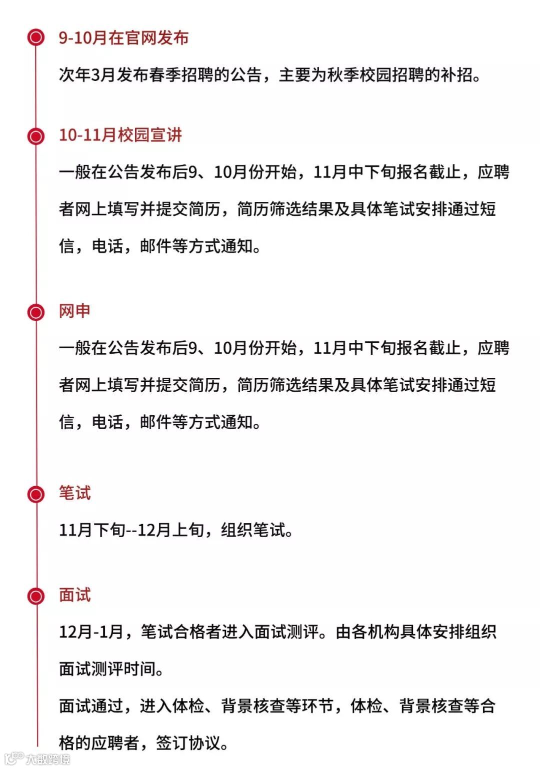 下面以具有代表性的银行(其他企业要点不同,形式类似)笔面试为例,让你大概了解一下笔面试流程,也可以预估一下准备的时间及其难度等。