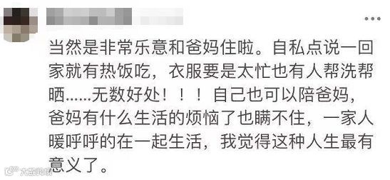 还有很多人是出于情感上的需求,迟迟不愿意改变和父母共同形成的家庭生活氛围。