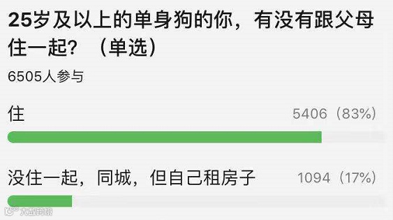在另一个问题中,同样有超过5400人选择了“25岁以上的单身狗,依然和父母住在一起”。