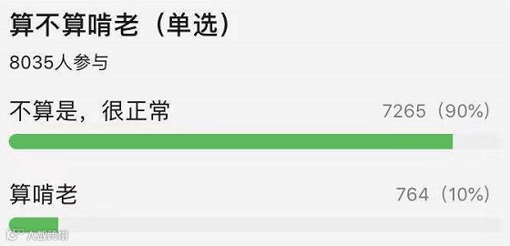当时有8000多个网友参与了投票,90%的人都选择了“不算啃老,很正常”。