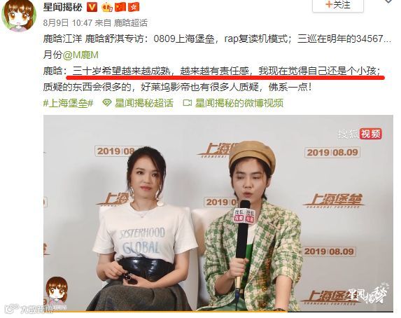 1990年出生、明年就30岁的鹿晗,前段时间接受采访时说,希望自己30岁后能越来越成熟,越来越有责任感,现在有时候会觉得心态还像个小孩儿。