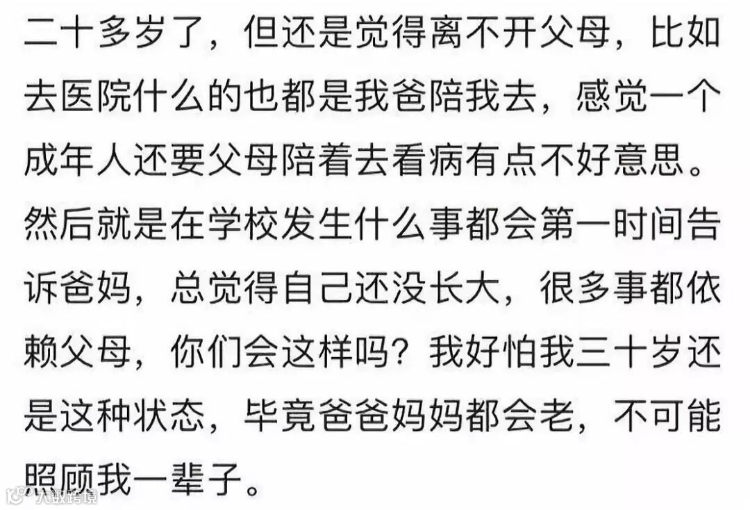 还在上大学的年轻人担心自己太依赖父母了,总是长不大