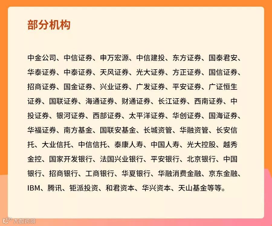 金融小伙伴career 金融小伙伴致力于搭建一个金融垂直领域职业信息分享和交流公益平台,通过持续不断的公众号推文和线上线下活动,提供及时、全面、高效的行业招聘信息和职场提升经验。目前,我们已吸引了超过100万粉丝,在海内外金融学子和在职人士中均享有盛誉。