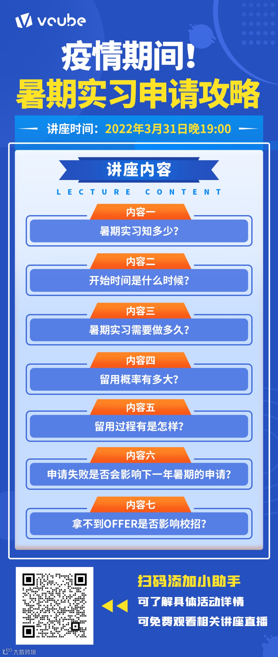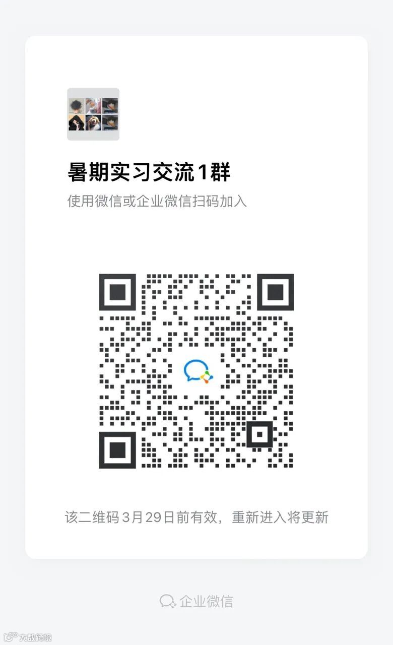 为了帮助大家更好的参与暑期实习,我们特地为大家准备了一场讲座,想要参与的同学扫描下方群二维码即可加群免费参加。