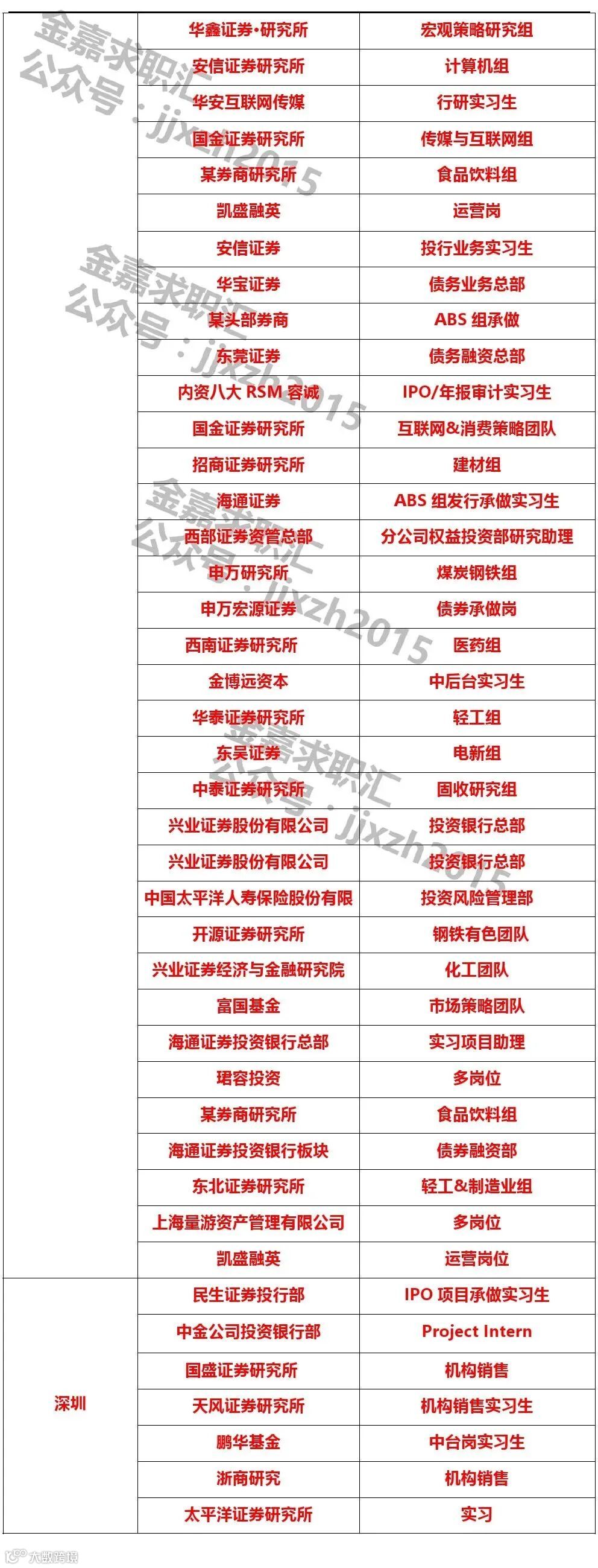 ①有志于投行方向就业的在读研究生,专业不限,理工科、财经法律金融背景皆可,有相关投行实习经验者优先;