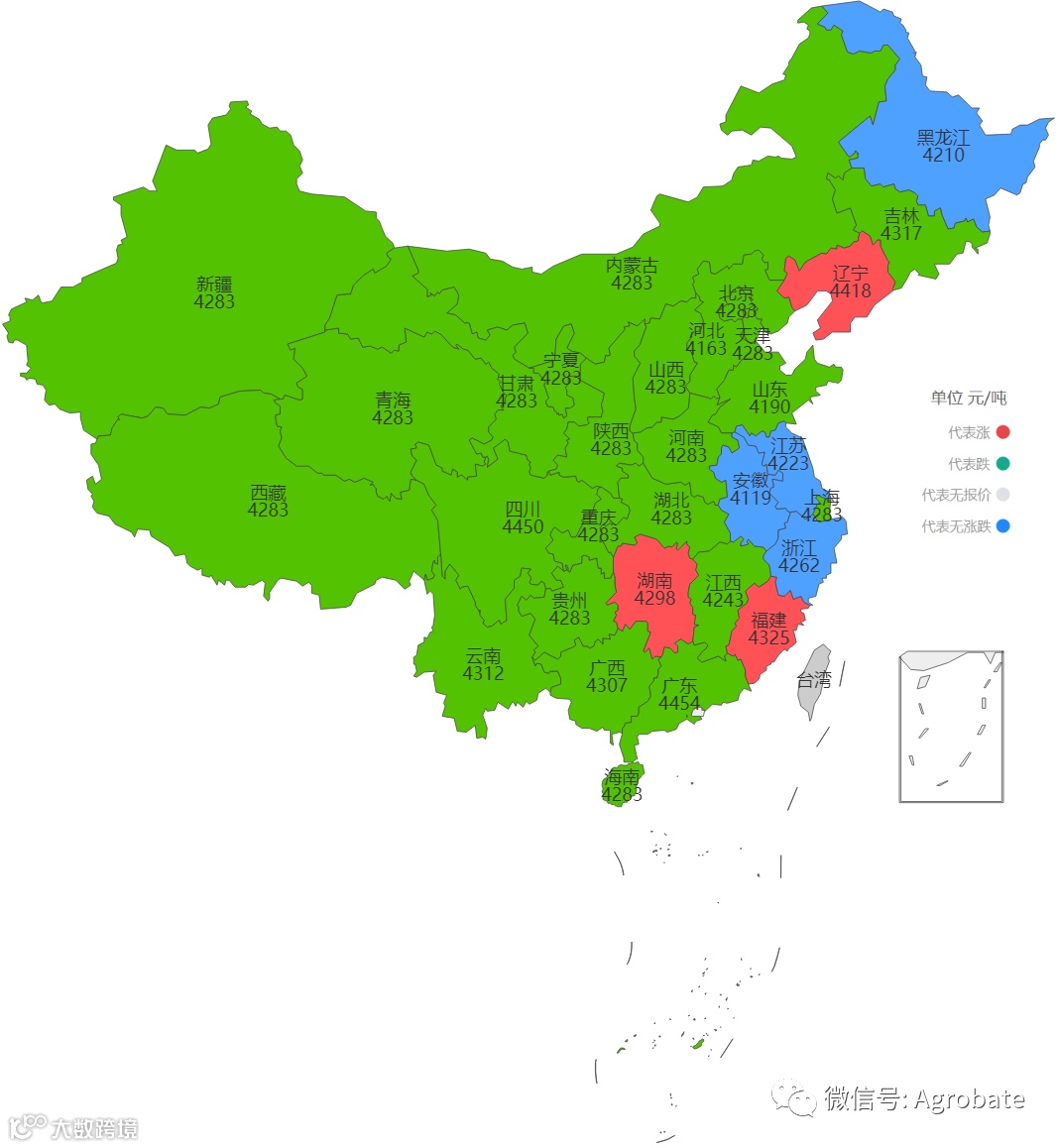 导读:饲料大宗原料玉米豆粕价格,以省为单位,检测价格变动,指导采购决策。