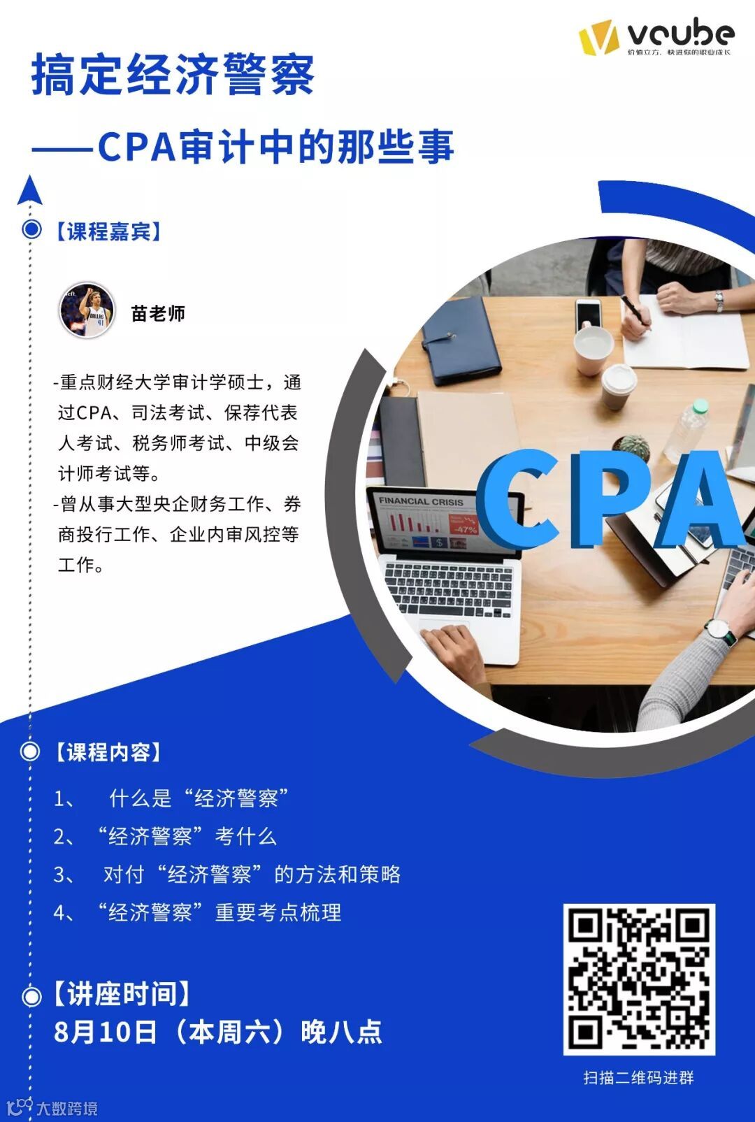 本周邀请到经济、法学和管理学博士,硕士生导师FS老师来为我们讲讲《搞定经济警察-CPA审计中的那些事》,8月10日(本周六)晚8点开讲!