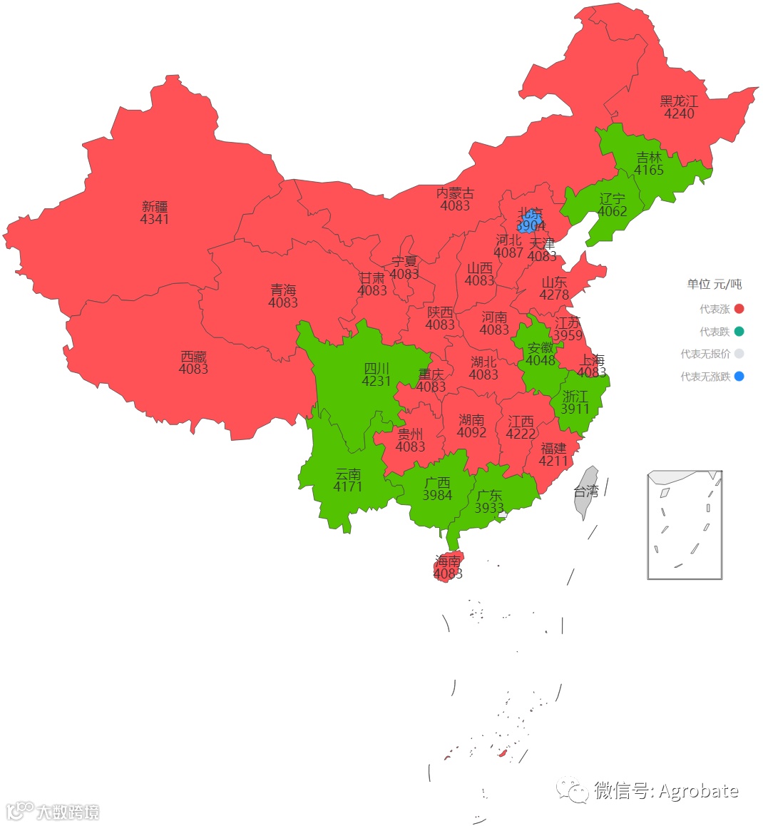 导读:饲料大宗原料玉米豆粕价格,以省为单位,检测价格变动,指导采购决策。