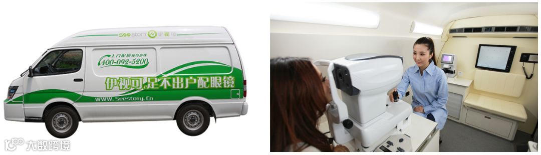② 伊视可:伊视可也是从线上获取流量,线下用改装的“验光车”来进行服务。由于是从线上获取流量,因此无需靠实体门店来获取客户,于是将“实体的门店”换成了“移动验光车”,车上配有验光设备和样品,同时也解决了服务半径的问题。实体门店的服务半径也就3公里左右,而移动验光车突破了服务半径的限制。