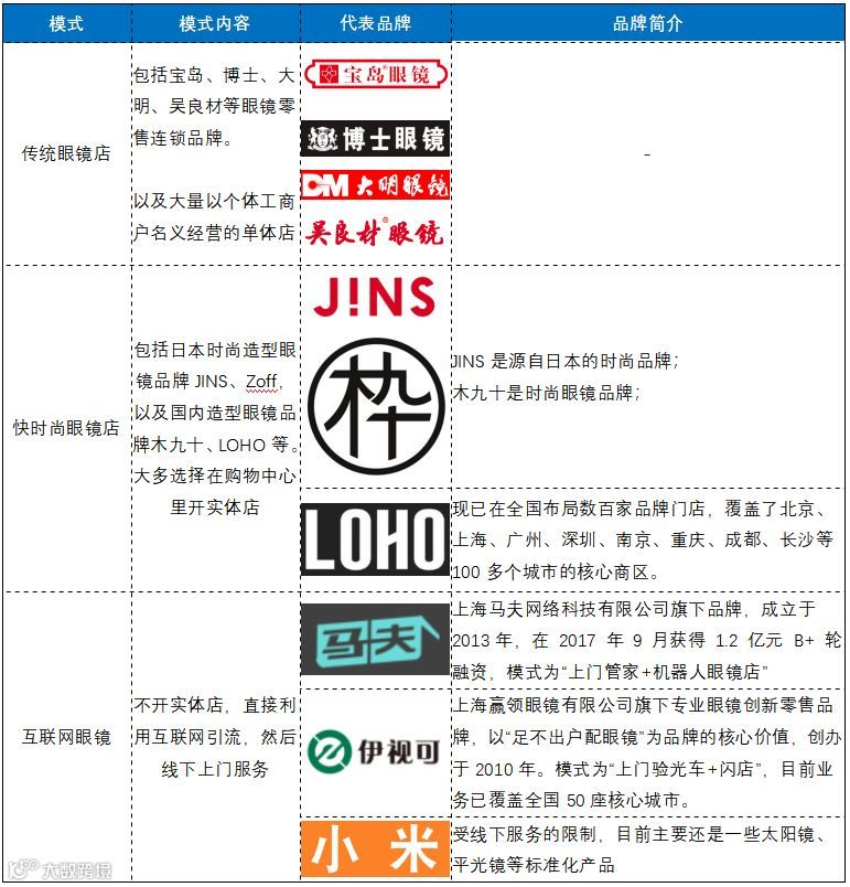图:眼镜业态对比