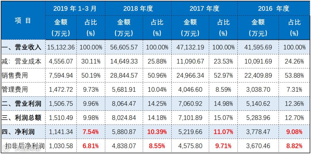 以2018年的财务数据为例:2018年全年净利润为5880万,净利润率为10.39%。5880万的净利润中还包括了713万元的政府补助、722万元的理财收益(上市募集来的资金用来理财获得的收益),这两块收益扣除所得税之后合计贡献了1100万元的利润。因此扣非后的净利润左右4800万,净利润率只有8.55%。