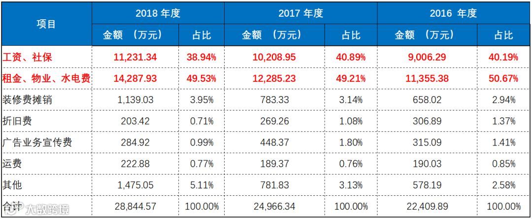 核心的原因是销售费用太大,尤其是人员费用及房租费用,具体明细如下表所示: