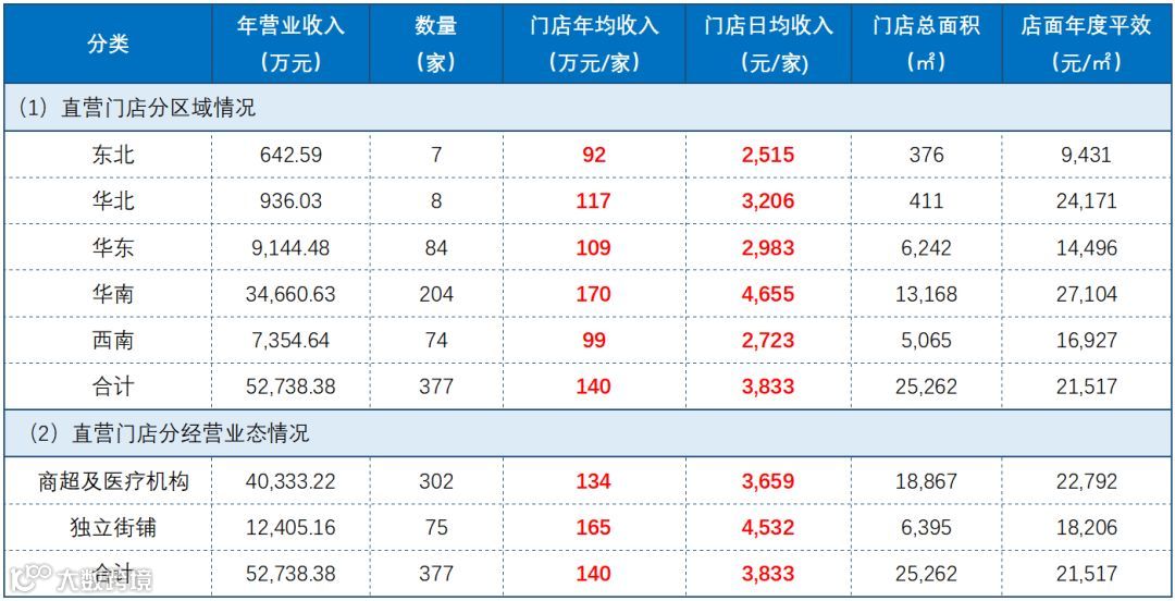 从上面的数据可以看到,密集开店的华南区域品牌影响较大因此单店的产出较高,日均收入能有4655元,如果按照1000元/单来计算,平均每天也就卖4副眼镜而已;而表现较差的东北及西南,平均每天也就销售2.5单。