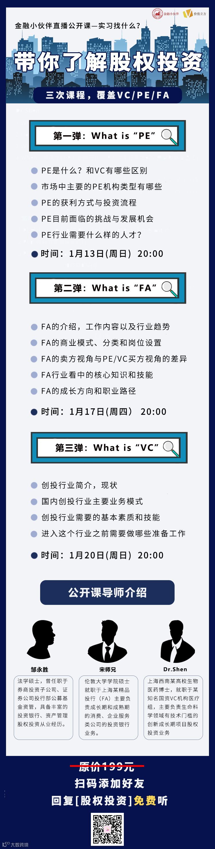 三场讲座,深度解读三大求职方向(PE、VC和FA