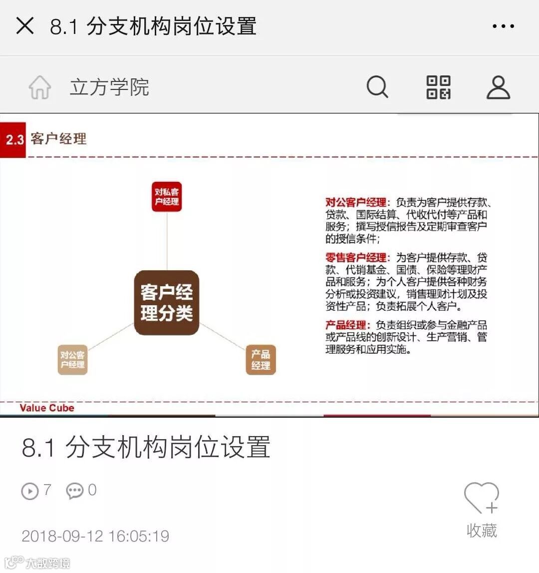 进一步掌握商业银行实务业务及职业发展,欢迎移步“立方学院”(公众号菜单栏,“更多干货”-“价值立方”进入)。资深业内导师专业性、实务性、深入浅出的讲解,让你对商业银行有一个超全面的了解。