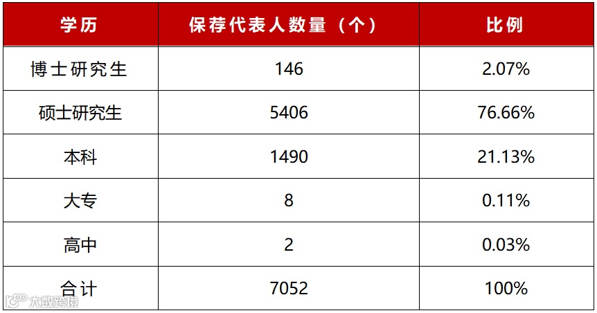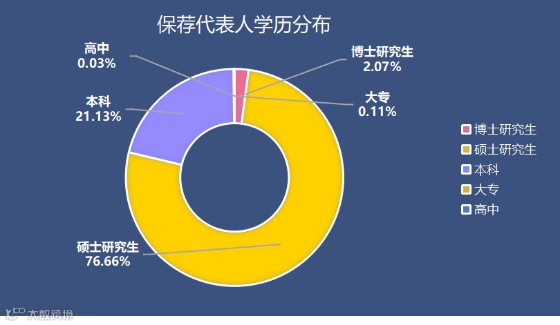 众所周知,券商投行非常看重学历,由下图可知,保荐代表人本科占比仅为20.32%,而硕士研究生占比高达76.99%。