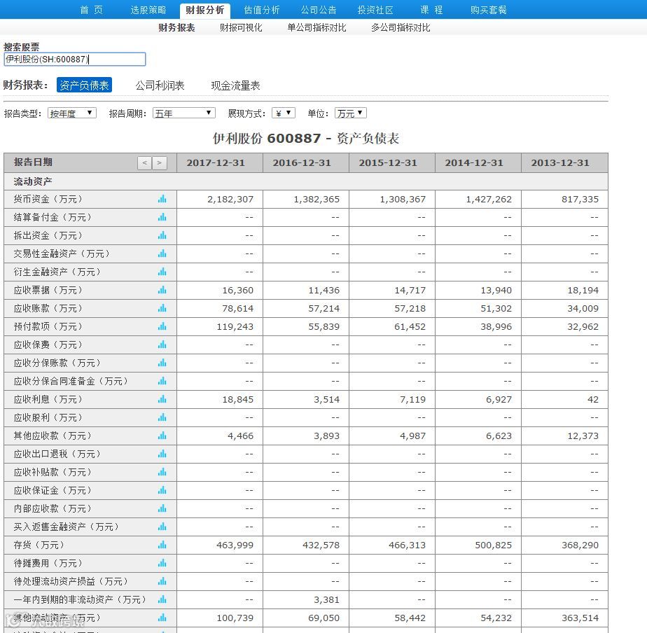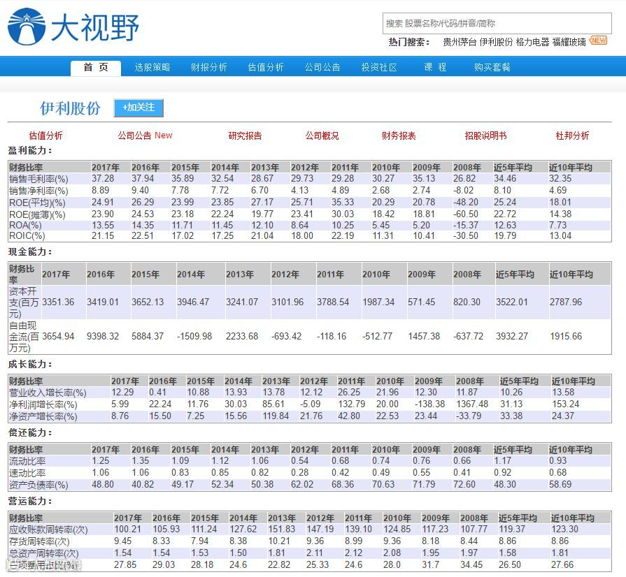 大家看上面的一行红字,有很多亮点比如估值分析;财务报表,如果我们想要收集数据只需点击财务报表就可以了,如下图: