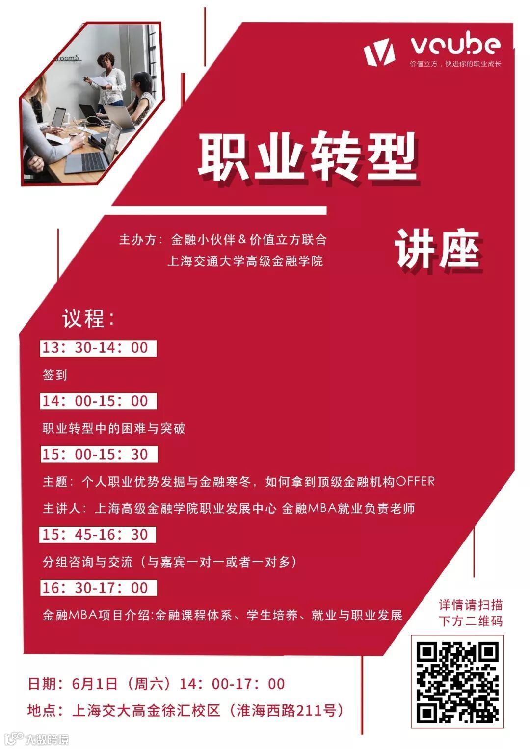 金融小伙伴&价值立方联合上海交通大学高级金融学院举办职业转型讲座,希望帮助让您察觉如何发掘个人职业优势,更好地进行职业规划与实现转型目标。