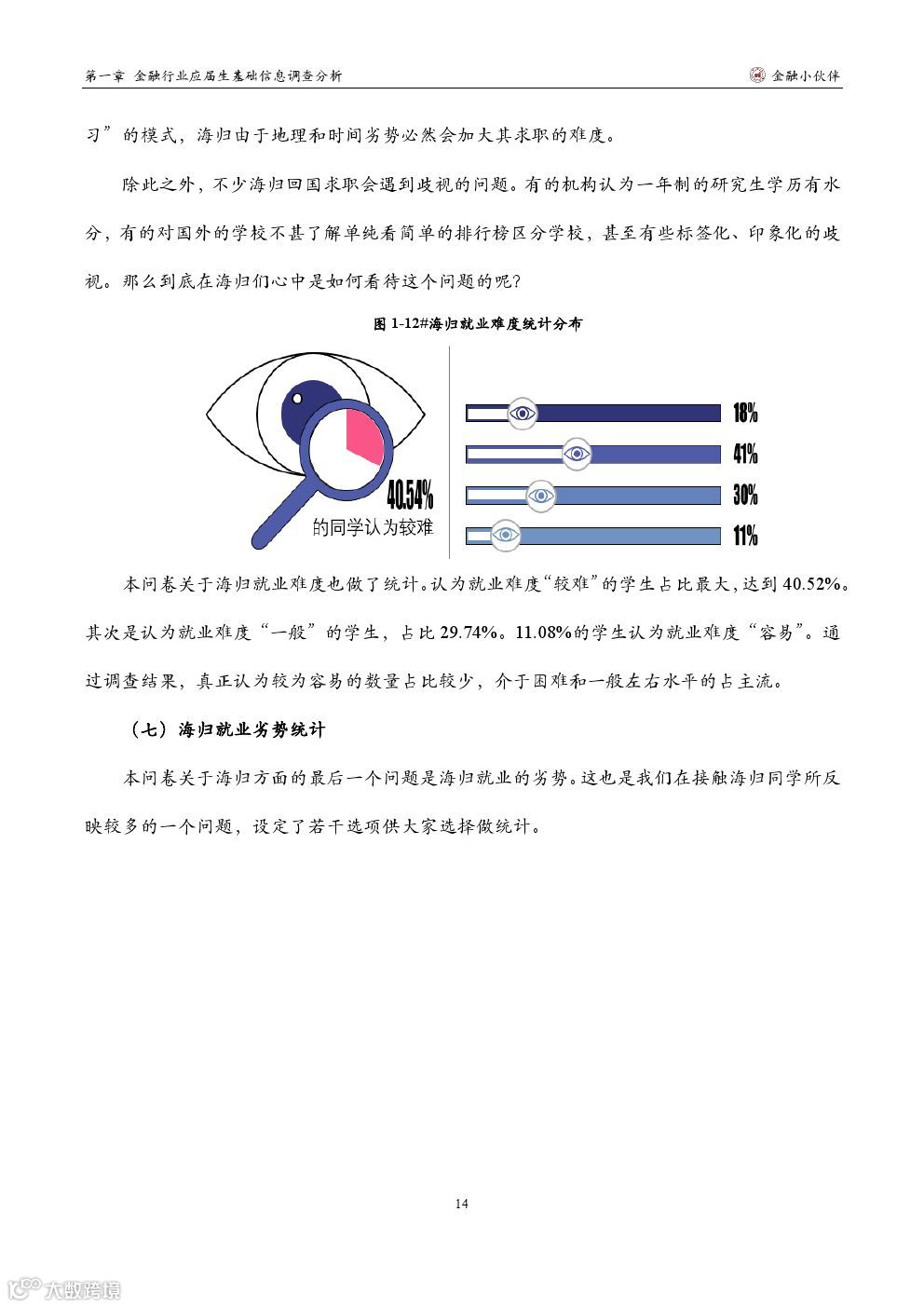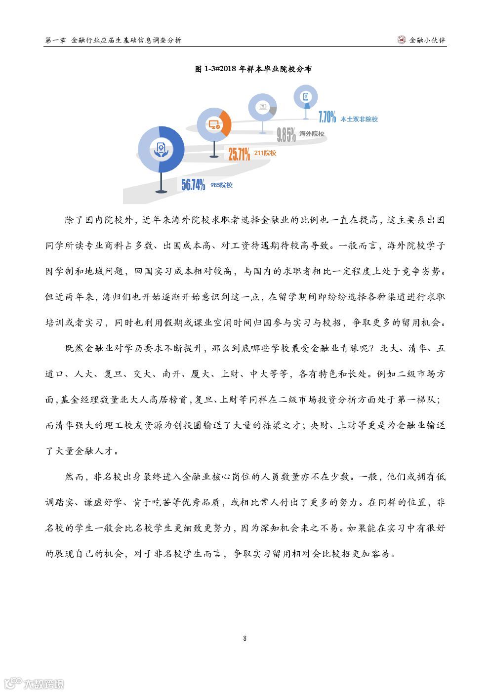 小伙伴每年推出当年年度的“金融行业应届生求职调查统计报告”,力求为金融领域即将工作的同学提供参考;