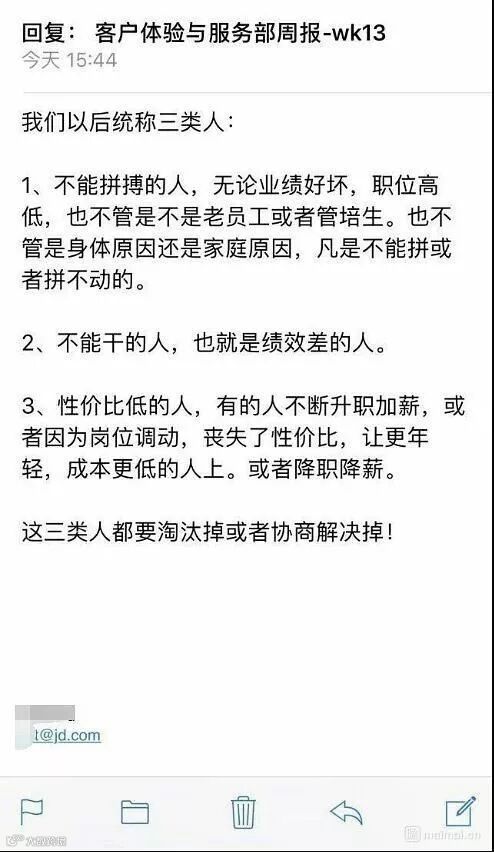 最近,有京东内部工作人员在某社交APP,曝出了疑似署名liuqiangdong的京东内部邮件,发文强调“坚决裁掉因家庭和身体原因不拼命的员工”。