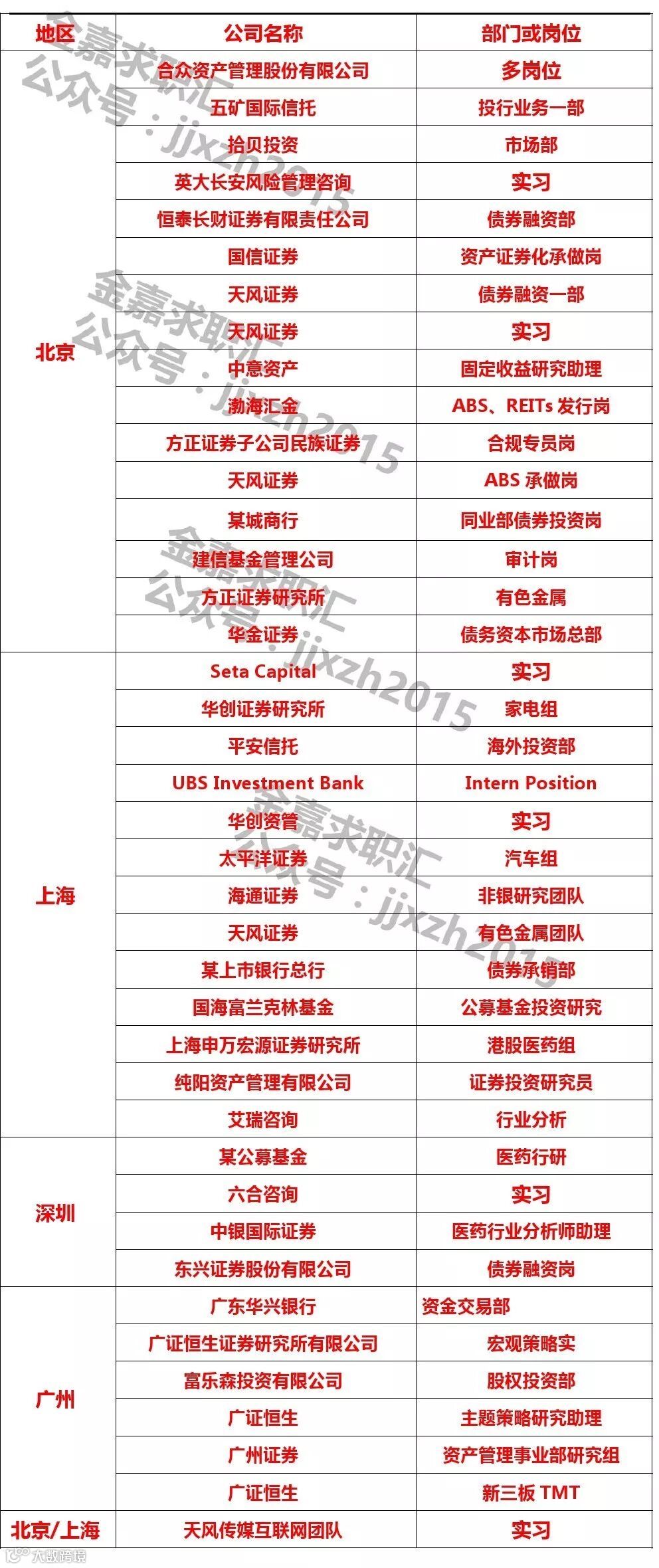 如需发布招聘信息请直接发送至金融小伙伴(jrxhb2014)后台